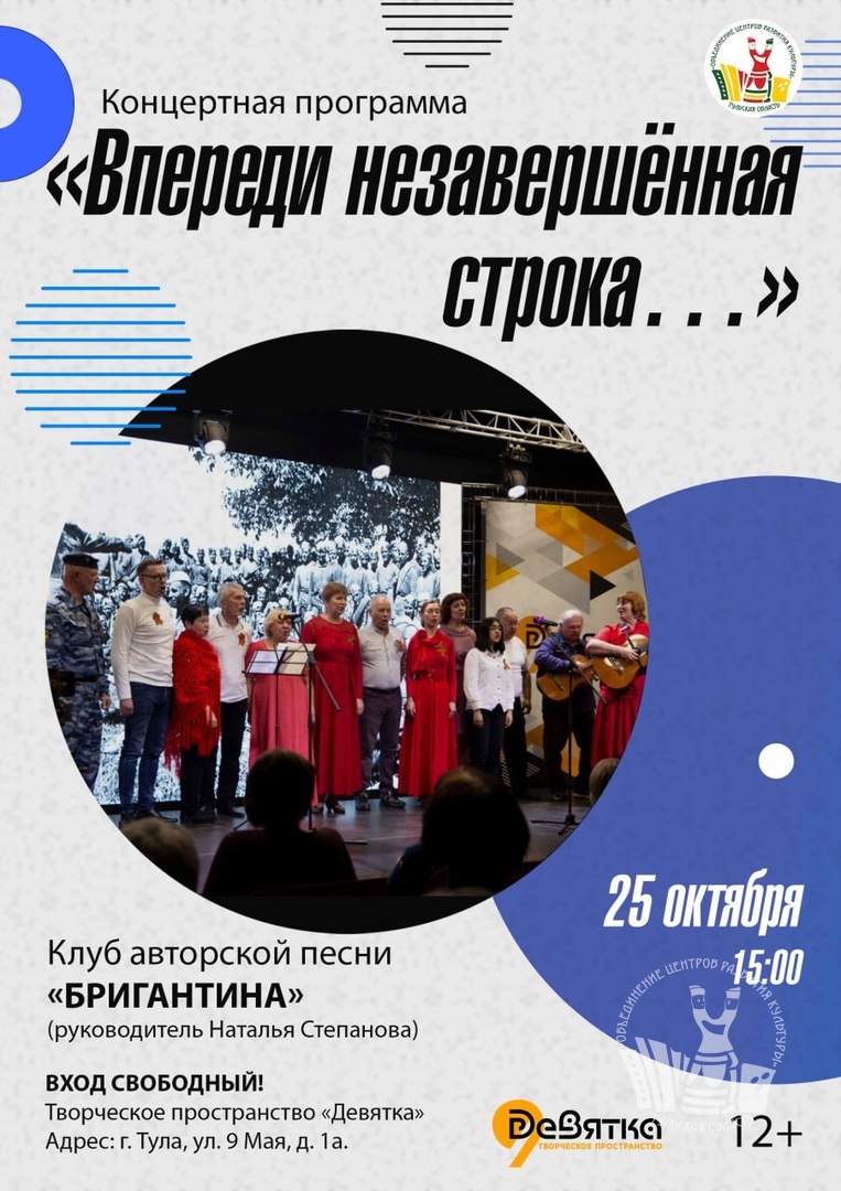 В концертной программе «Впереди незавершённая строка…» в исполнении солистов, ансамблей и хора «Бригантины» прозвучат авторские песни участников клуба, бардов-классиков и современных авторов-исполнителей.