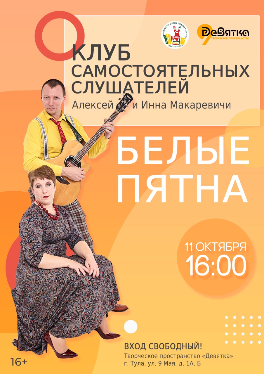 В этот день будут представлены песни авторов из различных городов Сибири и Алтая, имена которых не известны большинству туляков. В клубе выступят Алексей и Инна Макаревичи. Алексей – художественный руководитель московского музыкального коллектива «Прожект БАМ», мультиинструменталист, поэт, музыкант и художник, многолетний организатор фестиваля «Сростки» на алтайской реке «Катунь». Выступает с сольными программами и в дуэте с женой Инной.