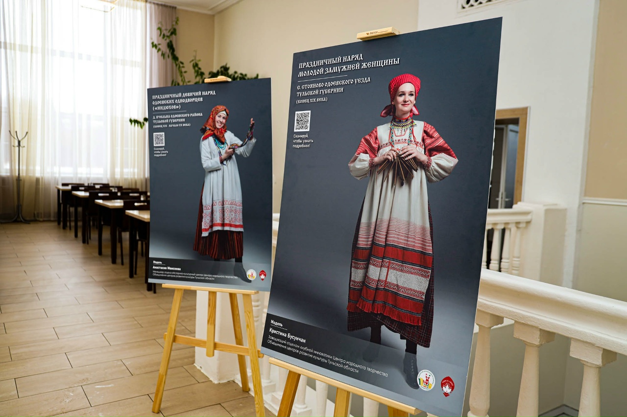 Моделями для фотовыставки стали сотрудницы центра народного творчества, которые примерили женские этнографические костюмы Тульской губернии конца XIX – начала XX века из собрания коллекционера и исследователя Игоря Климова. Образы дополнены нагрудными украшениями из тульской коллекции Российского этнографического музея. Реплики выполнены народным мастером РФ Галиной Чекиной.